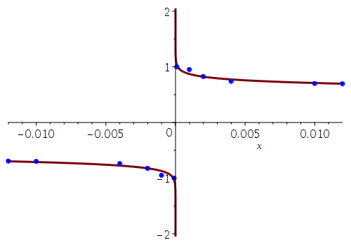 F := piecewise(x <= 0, .612662+0.701029e-1*ln(6.37473*10^(-7)*abs(x)), .202488-0.701029e-1*ln(0.715150e-1*abs(x)))