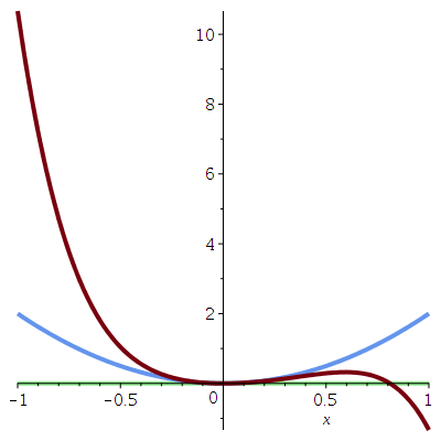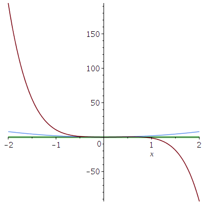plot([seq(expr, R = [0, 1, 2, 3])], x = -1 .. 1, color = [red, blue, green, magenta], legend = [seq('R' = R, R = [0, 1, 2, 3])])