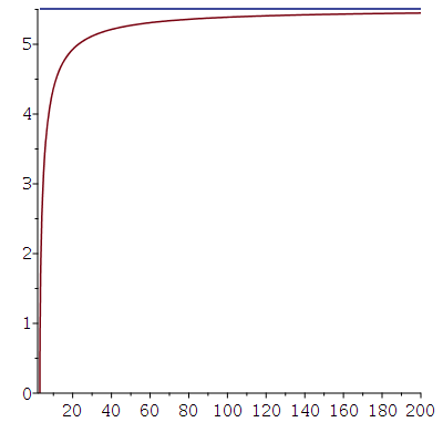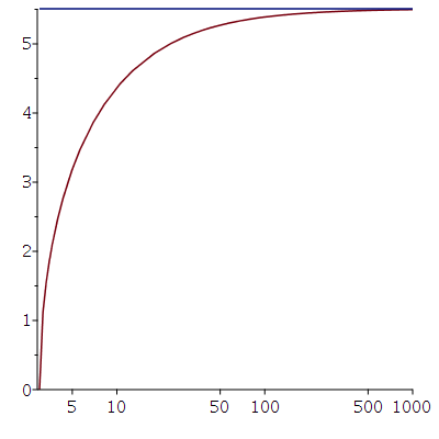 plot([F, F(infinity)], 3 .. 10^3, axis[1] = [mode = log])