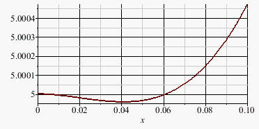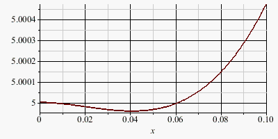 plot(f2, 0..0.1), plot(f2(x), x=0..0.1) ]), size=[400,200]);