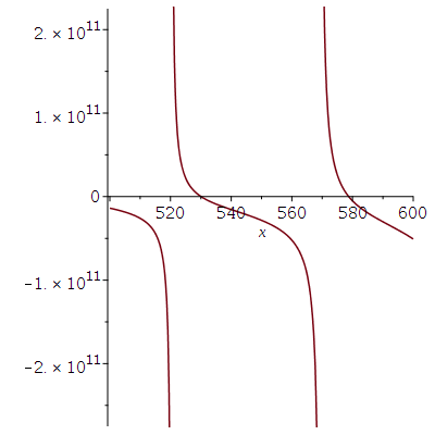 Digits := 30; plot(newest, x = 500 .. 600, discont); Digits := 10