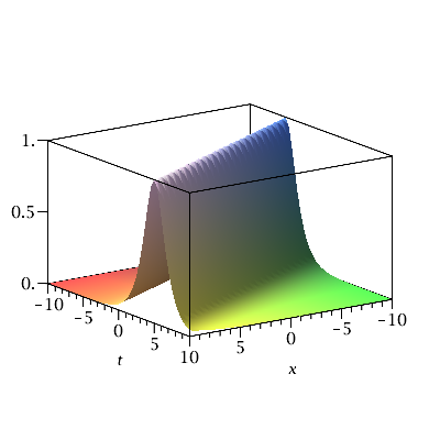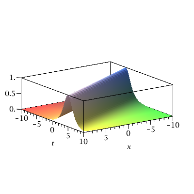 H:=K->plot3d(K*sech(1/2*sqrt(3/5)*(x - 2*t)),