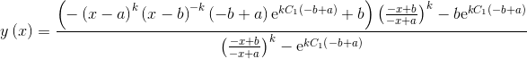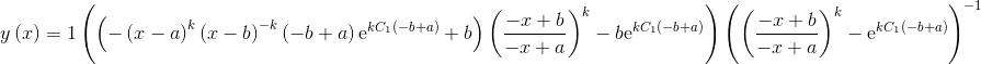 y \left( x \right)  = \frac {  \left( - \left( x-a \right) ^{k} \left( x-b \right) ^{-k} \left( -b+a \right) {{\rm e}^{kC_{{1}} \left( -b+a \right) }}+b \right)  \left( {\frac {-x+b}{-x+a}} \right) ^{k}-b{{\rm e}^{kC_{{1}} \left( -b+a \right) }} }{  \left( {\frac {-x+b}{-x+a}} \right) ^{k}-{{\rm e}^{kC_{{1}} \left( -b+a \right) }} }
