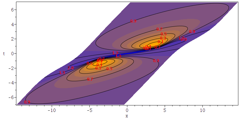 subsindets(plots:-contourplot([x,t,u], f=-7..7, t=-7..7, grid=[101,101],