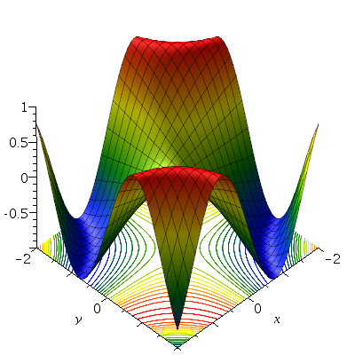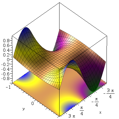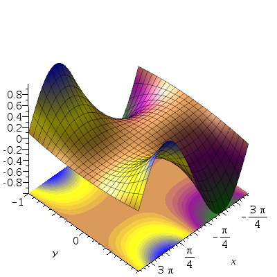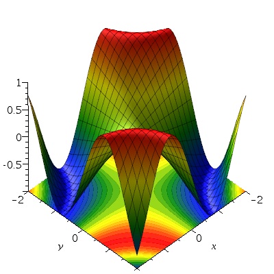 plot3d([x,t,u], f=-5..5, t=-5..5, grid=[251,251]);