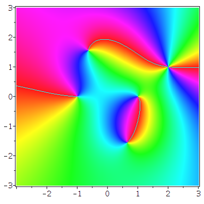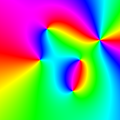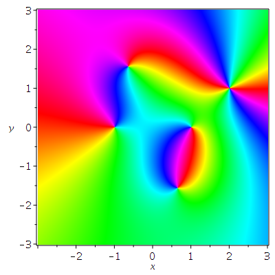 One way to do it is by using the plots:-densityplot command. But that can make the Maple GUI behave badly if the grid size is too large. And that allows you to shade the hue by the argument, but doesn't provide any nice mechanism for controlling the intensity or saturation layers.