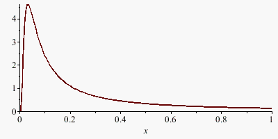 plot(PDF(X,x), x=0..1, size=[400,200]);