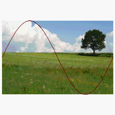 You didn't say whether you wanted to re-scale the sine curve, vertically, if the image was not in the same proportions as the x- and y-ranges. Or vice versa. So I chose the former. And it wasn't clear whether you wanted to display axes, whose tickmarks might match the sine values and x-y data.