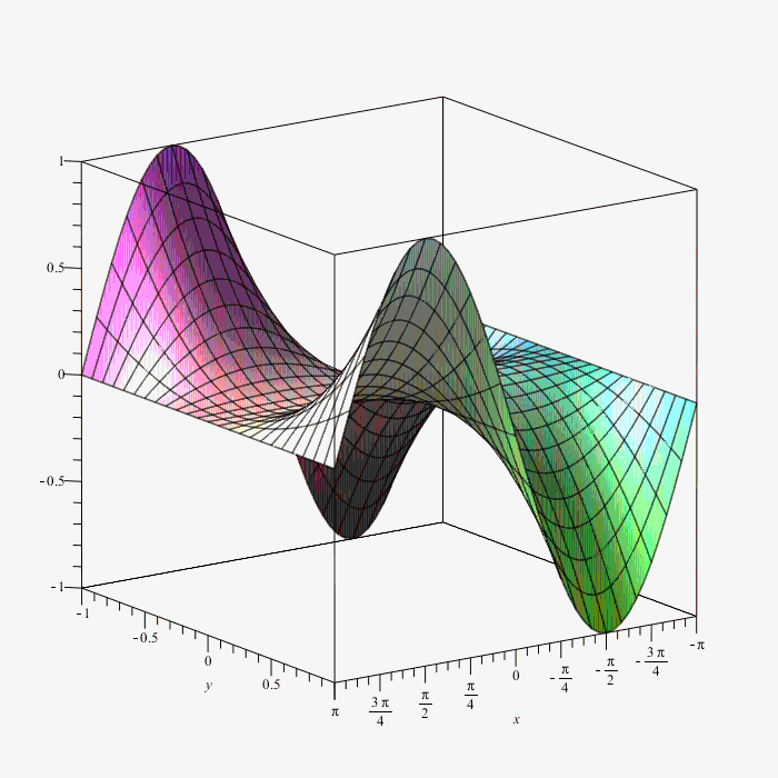 Q := plot3d(sin(x)*y^2, x=-Pi .. Pi, y=-1 .. 1):