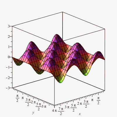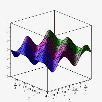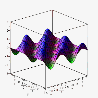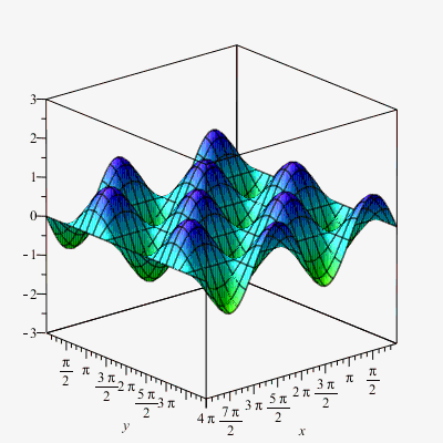 plot3d(f(x,y), x = 0 .. 4*Pi, y = 0 .. 4*Pi,