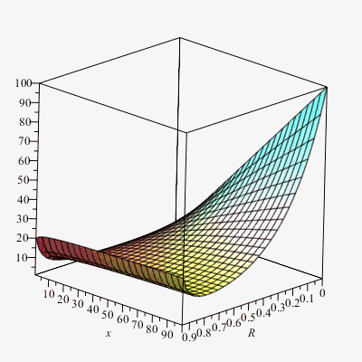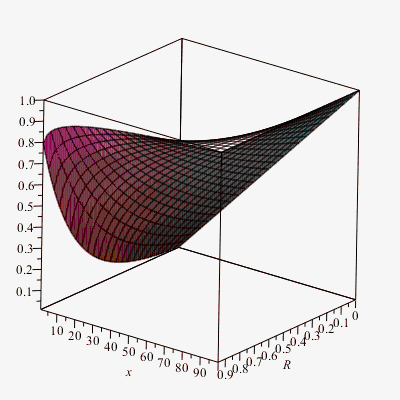 lnB := plot3d(ln(CARA2), R = 0 .. .95, x = 1 .. 100):