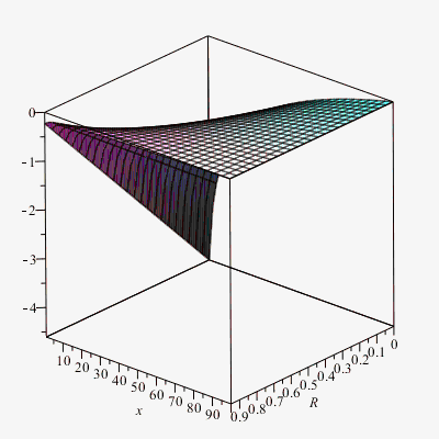 lnBnew:=plot3d(ln(CARA2/Xmax(R,eval(CARA2,[R=Rdummy,x=xdummy]),Rdummy)),