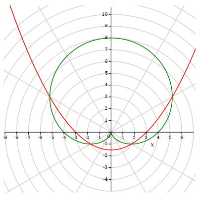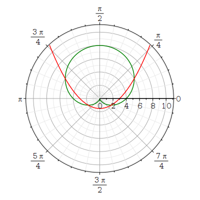 polarplot([4+4*sin(theta), 3/(1-sin(theta))],