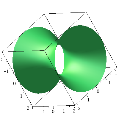 The difference being that Carl has used the parametric calling-sequence of plot3d while I've used the expression calling-sequence (while we both used coords=cylindrical). Also, Carl noticed that only one of the two signed pieces is needed in this variant.