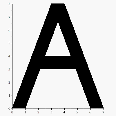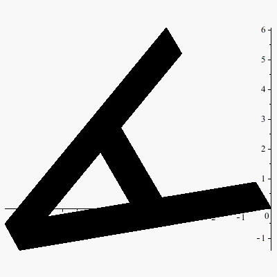You should be able to produce an unrotated "A" with just three polygons, and without any (white) occluding background, in one line of code. Even better, construct a procedure that returns the plot structure for an "A" (upright, with lower left corner at the origin).