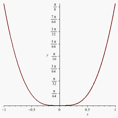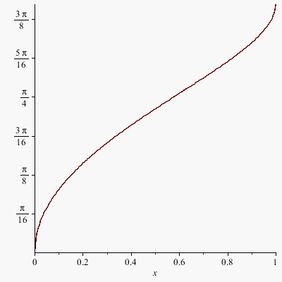 plot(sqrt(arcsin(x)), x=0..1, tickmarks=[decimalticks, piticks]);