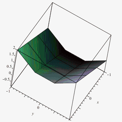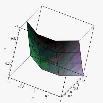 P:=plot3d(x+y^2,x=-1..1,y=-1..1,shading=zgrayscale,grid=[4,4]):