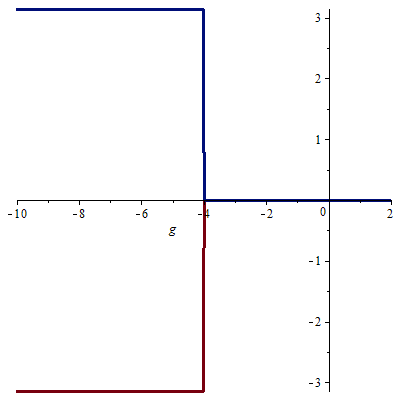 I believe that ee=S holds on the complex plane and not just for the real line, except at g=-4. The 2D plot of the imaginary part of ee and S are interesting on account of a similar simplification done at bottom.