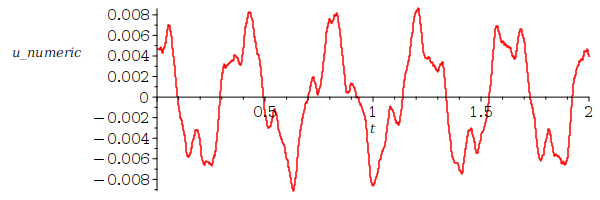 plot(UXT(0.75,t), t=0..2, adaptive=false, numpoints=4001,