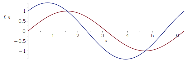 ode := diff(f(x),x,x) = -f(x), diff(g(x),x)=g(x)-2*f(x);