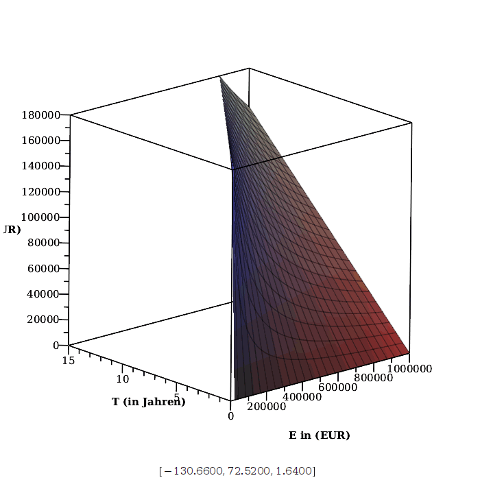 labels = ["E in (EUR)", "T (in Jahren)", "V (in EUR)"],