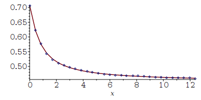 numapprox:-chebpade('f(x)', x = 0.1e-12 .. cutoff, [4, 4]); fapprox := numapprox:-confracform(eval(%, T = orthopoly[T])); lprint(%)