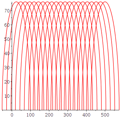 xLimitWall := 500.0; nScatter := 20; step := xLimitWall/(nScatter+1); x := 0.; for i from 0 to nScatter do x := x+step; cir := arc([x, 0.], radius-step, 0 .. Pi, color = "red"); if i = 0 then lc := Vector([cir]) else i; cir; Append(lc, cir) end if end do