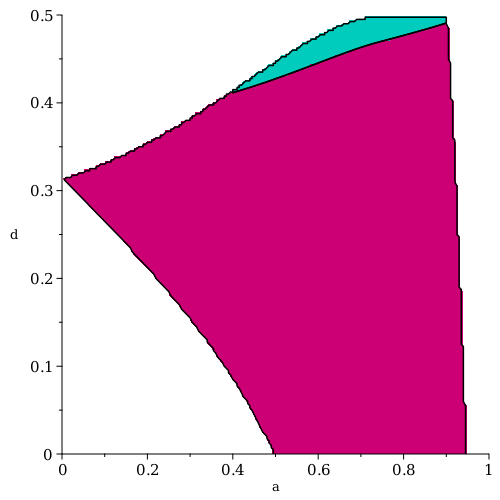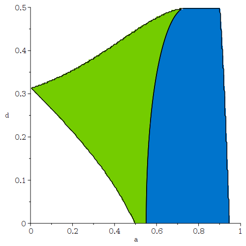 P2 := plots:-inequal(FMFC(a, d, "low") >= FMHmax(a, d, "high"), a = 0 .. 1, d = 0 .. .5, optionsfeasible = [[color = "Spring 3"]])