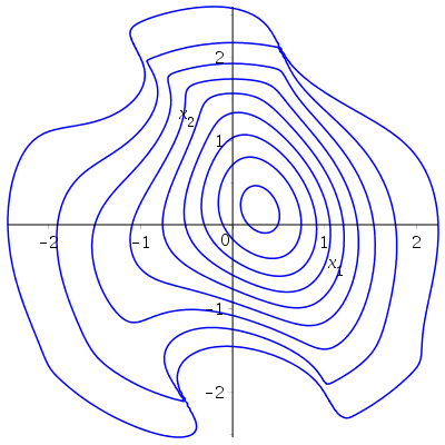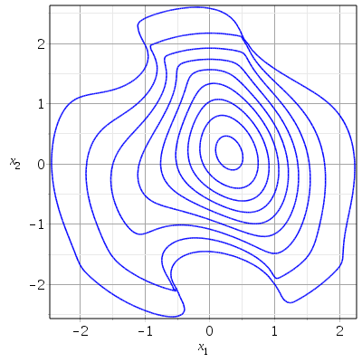 f := 11-((x-4)^2+(y-3)^2)/25;