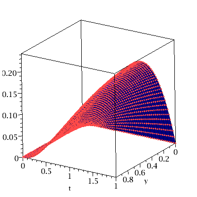 pdSol:-plot3d( u(y,t), y=0..1, t=0..2, numpoints=200, color=colors[1]),