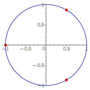 [-1, 1/2-((1/2)*I)*3^(1/2), 1/2+((1/2)*I)*3^(1/2)]
