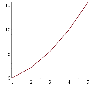 [1, 2, 3, 4, 5], [0., 2.139179446, 5.445184045, 9.932905704, 15.59270850]
