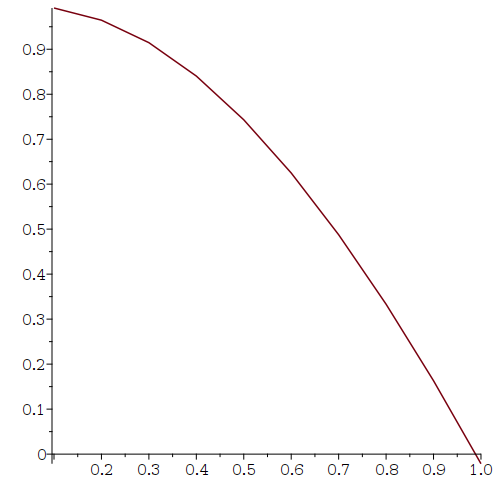 [edit] Your code numerically computes a minimum of an abs call, at a discrete number of N points. You could also plot the smooth curve of the continuous zero-crossing. (Again, there are several ways; I show three ways in the following attachment, one of them using implicitplot.)  4.6_acc.mw