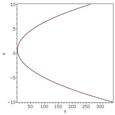 plot([y, x, x = -10 .. 10], axes = box, labels = ["y", "x"]);