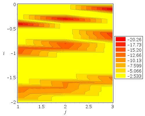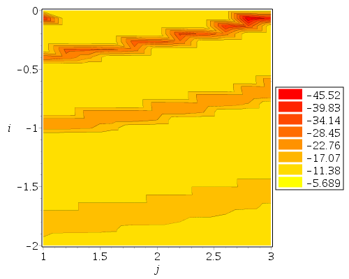 CodeTools:- Usage(contourplot(max(-1e2,testproc(i,j,4)), j=rngj, i=rngi, grid=gridji,