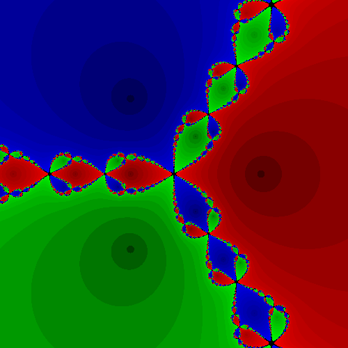 Of course one could optionally scale the intensity (brightness) in reverse, so that points which took longer to converge were darker. (That might jibe better with the non-converged points showing as black.)