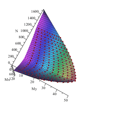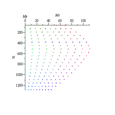 Looking down on the 3D point-plot in the negative-My direction, the view projected onto the Mx-N plane looks like this: