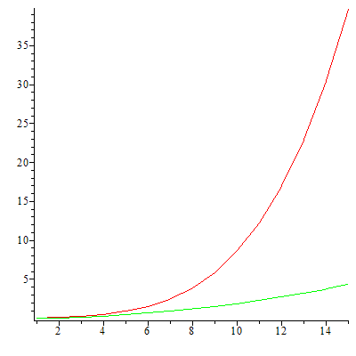 plot([seq([i,time(newerdaytoday(25,12,1900,15,3,1900+i^2))],i=1..15)],color=green));