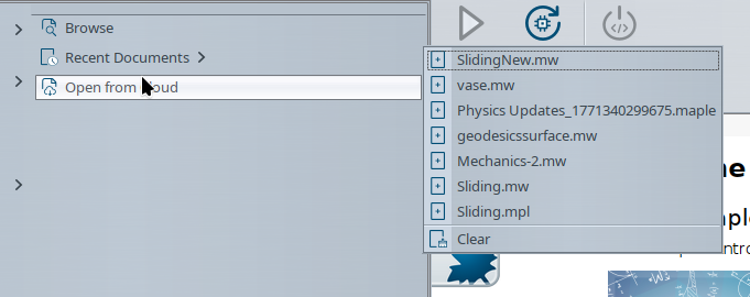 I am using Maple2026 (I skipped Maple2025) and see this problem with Wayland (not with X11). When I put my cursor on "Recent Documents", a list appears to the right. But as soon as I move my cursor to the right, the window closes without giving me a chance to click. I have found that when the menu appears and instead of moving cursor to the right I move it up or down, I can make a selection from recent files after that (that is, the right menu does not disappear as it should...):