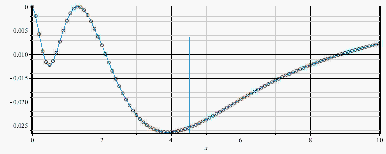 y = (HFloat(5.639522374600771e-5)-HFloat(0.01288317349838677)*x-HFloat(0.06604775314173278)*x^2+HFloat(0.15402604574862966)*x^3-HFloat(0.10061405755123216)*x^4+HFloat(0.023236449348067213)*x^5-HFloat(0.0019176140897419658)*x^6+HFloat(4.3721095224913685e-5)*x^7)/(-HFloat(2.4682505243289557e-5)*x^9-HFloat(0.029674002394674673)*x^7+HFloat(0.21654010768516482)*x^6+HFloat(0.0018072506978093039)*x^8-HFloat(2.232927596702025)*x+HFloat(5.086432887393217)*x^2-HFloat(4.445396816679889)*x^3+HFloat(2.781300306907042)*x^4-HFloat(0.9769206707691607)*x^5+1)
