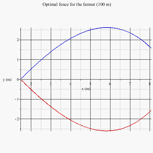 # We want to maximize: A = ∫ y dx subject to ∫ sqrt(1+y'^2) dx = L (fixed)