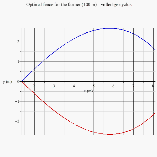 # Correcte definitie van de optimale kromme (halve cirkel op de x-as)