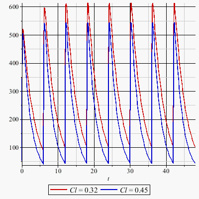 deq  := diff(C(t), t) = dose(t) - Cl*C(t):