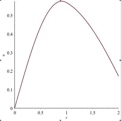 odeplot(sol, [r, u(r)], r = 0 .. 2);