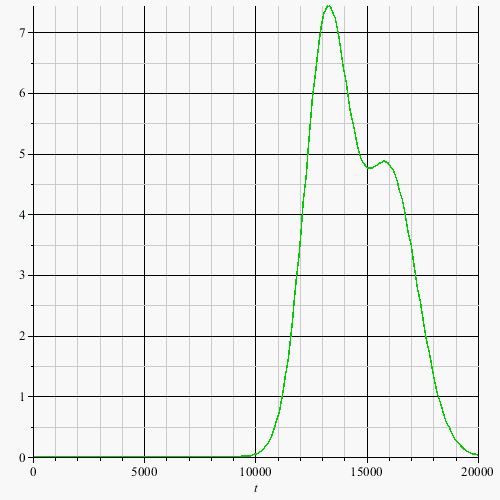 f := proc (t) options operator, arrow; 7.0*exp(-(1/2000000)*(t-13180)^2)+4.7*exp(-(1/3200000)*(t-16000)^2) end proc: