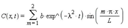 C := proc (x, t) options operator, arrow; sum(b*exp(-lambda^2*t)*sin(m*Pi*x/L), m = 1 .. 2) end proc