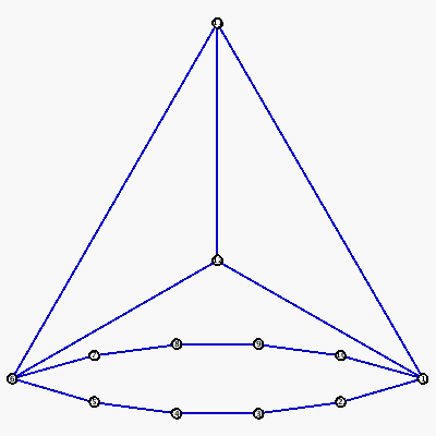 After having equalized the coefficients of these two equations the procedure solves a system of 6 equations (p, q, r, plus  the abscissas A[1], A[2], A[3] of the three tangency points).