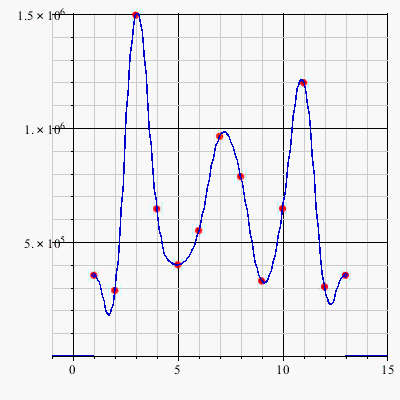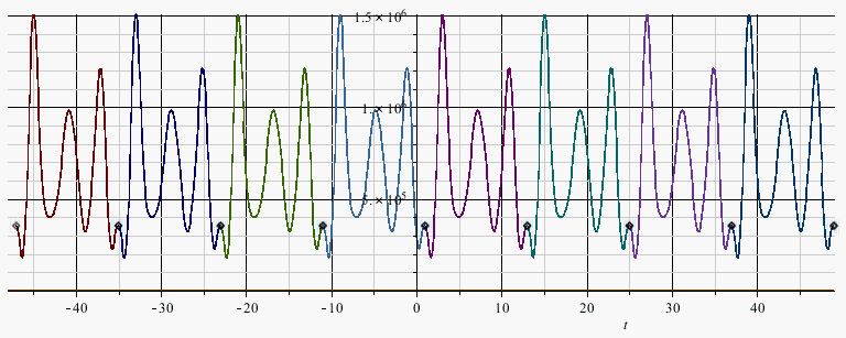 proc (t) options operator, arrow; 10+1.5*t+3*sin(10*Pi*t+2) end proc