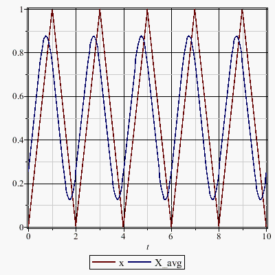 plot([Xper(t), X_avg],t=0..10, legend=["x","X_avg"], axes=boxed);