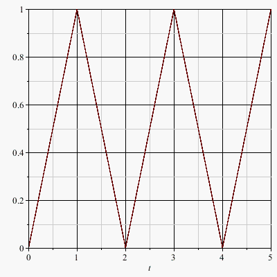 X    := t -> piecewise(t<0, 0,  t<1, t, t<2, 2-t, 0):